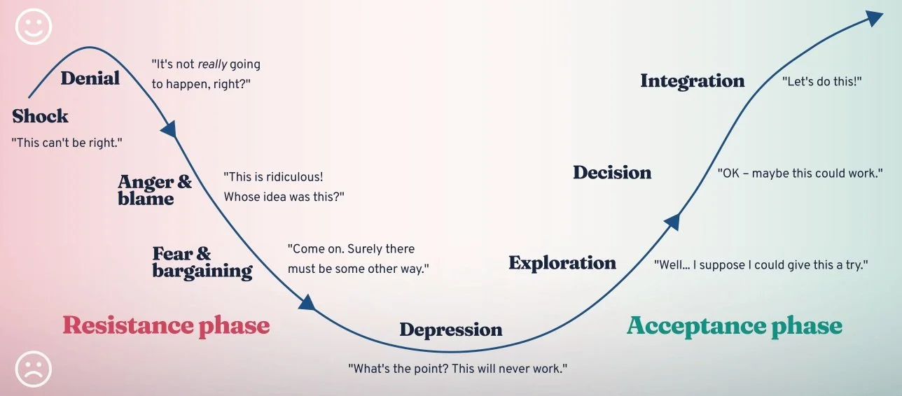 When leaders and teams apply emotional intelligence to the change curve, they shift from resistance to resilience. For example: